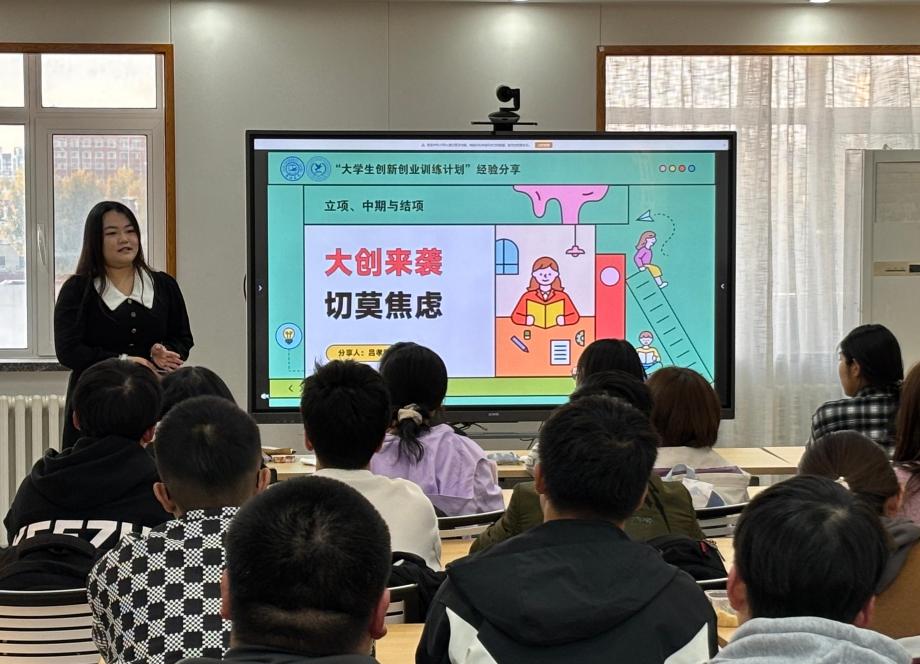 吕孝阳同学分享了关于大学生创新创业训练计划的相关经验和注意事项。她以“大创”简介开篇并指出参加“大创”应守本心、忌功利、不盲从,通过“大创”提升自我。她着重讲解了对“大创”的具体过程,以个人已结题的两个大创项目为例,从选题、指导教师选择、立项书、答辩等多方面进行了详尽细致的分享。最后吕孝阳同学强调“大创”更重要的是参与过程中的学习和自我提升,同时勉励同学们不要怀疑自己,对未来充满信心,勇于尝试,锻炼自我。