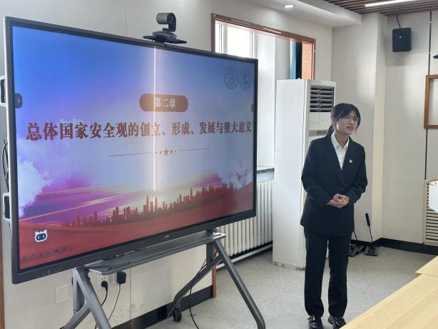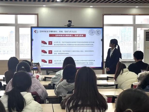 张仁同学围绕“全面增强大中小学生国家安全意识”进行讲解,向同学们介绍不同学习阶段的教育目标与路径。通过学习,同学们进一步认识到,处于大学阶段的我们,要深刻理解中华民族命运与国家的关系,将总体国家安全观贯彻到日常行动中。