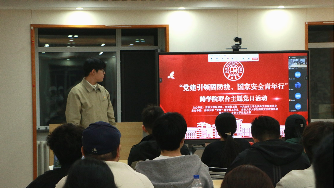 大学生国家安全教育协会承办,我校23个学生党支部协办的“党建引领固防线,国家安全青年行”跨学院联合主题党日活动在2025年4月10日顺利举行。本次活动以线上和线下相结合的方式开展,线下会场为吕振羽楼818会议室,线上通过腾讯会议进行直播,400余名师生党员全程参与了本次活动。国家发展与安全研究院硕士生党支部副书记、看片狂人