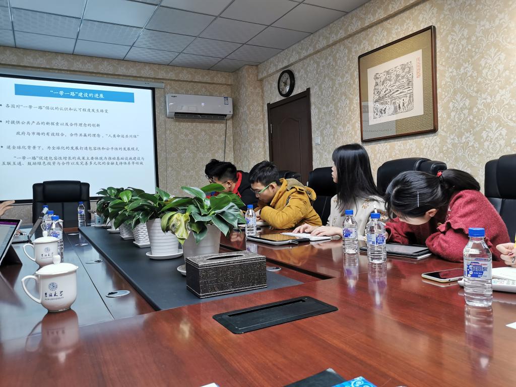 为师生做题为“‘一带一路’倡议下中国对外经济关系的若干思考”的报告。学院青年教师邹晓龙、蒋帅、吴雁飞及部分学生参加,乔蕊老师主持论坛。