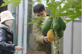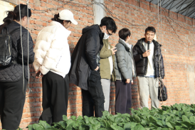 在讲解员的引导下,教职工参观了陈家店村现代农业展示馆。尽管室外寒风凛冽,智能温室内却温暖如春。热带果木郁郁葱葱,大片绿意扑面而来;蔬菜分拣车间井然有序,包装好的各类蔬菜整装待发……