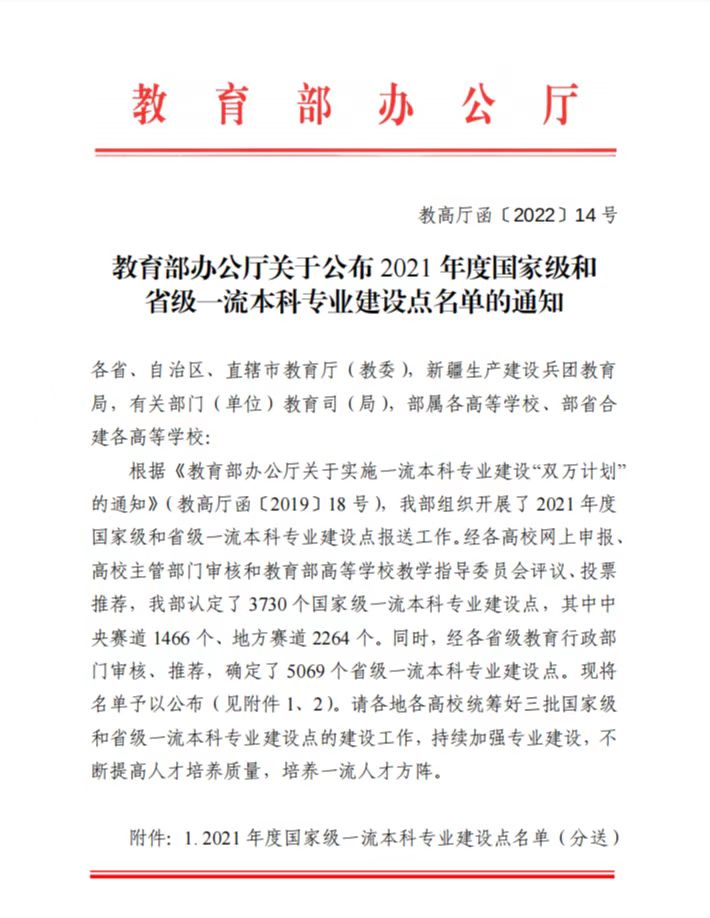 根据《教育部办公厅关于公布2021年度国家级和省级一流本科专业建设点名单的通知》,看片狂人