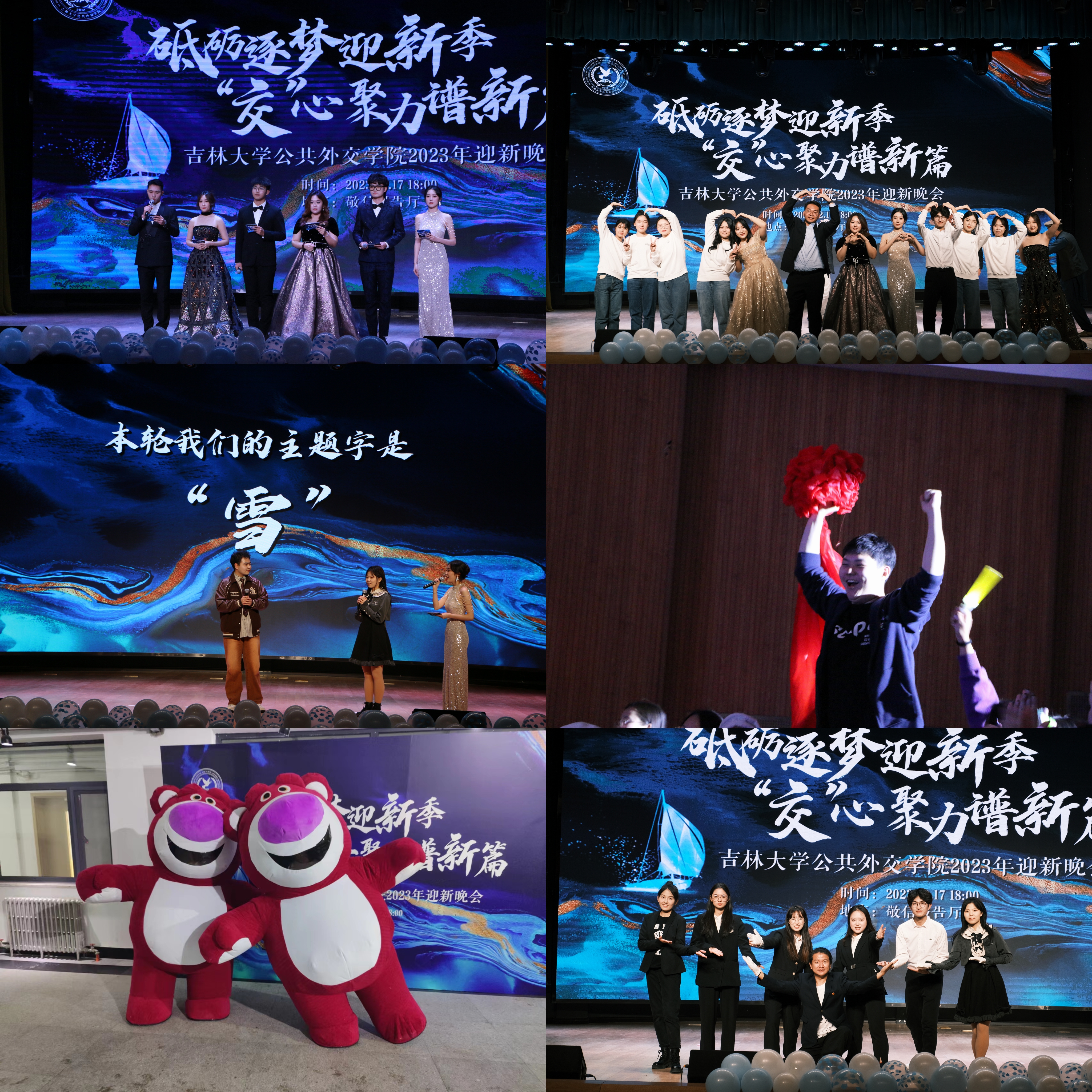 2023年迎新晚会于敬信报告厅隆重举行,学院全体领导班子成员、学院教师代表和各年级本科生、研究生、留学生,共300余人到达现场,共赴盛会。