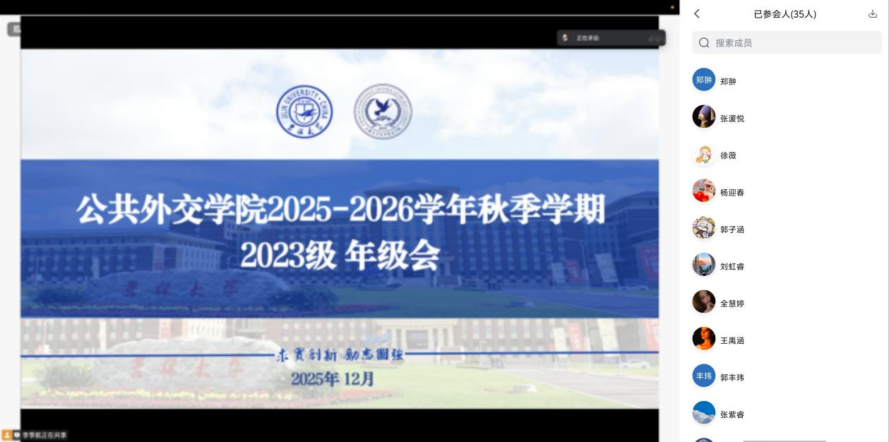 2023级本科生年级会议于线上举行,年级辅导员李老师与全体2023级本科生共同参加会议。